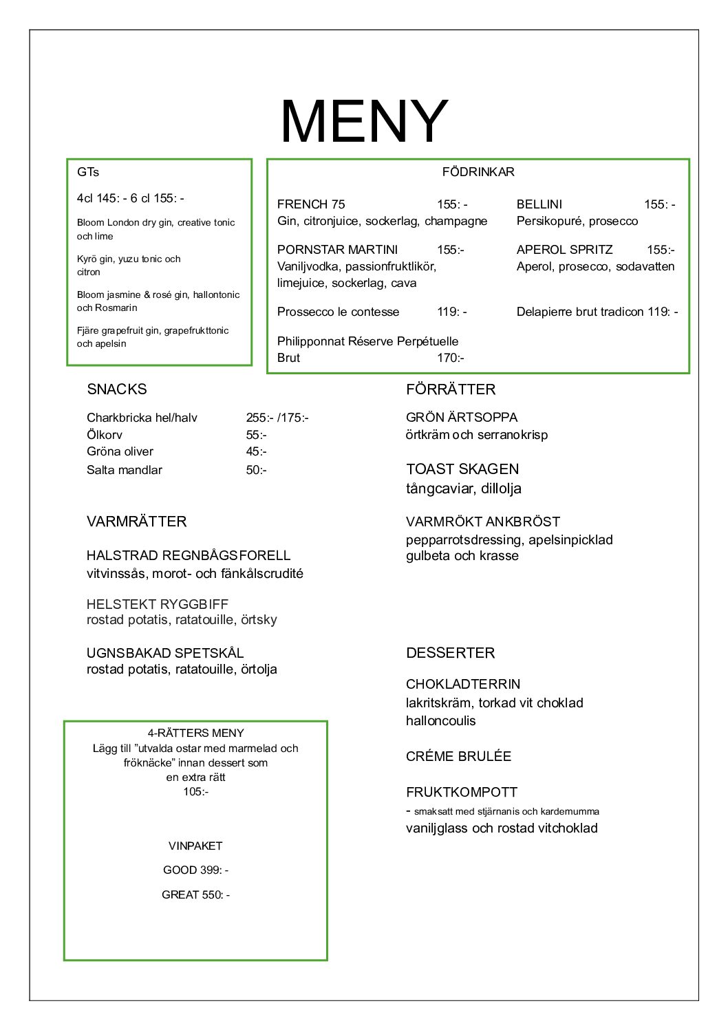 Vi har öppet nästan alla dagar! Meny finner ni här nedan. Bokning görs enklast på mail: reception@lydinge.com